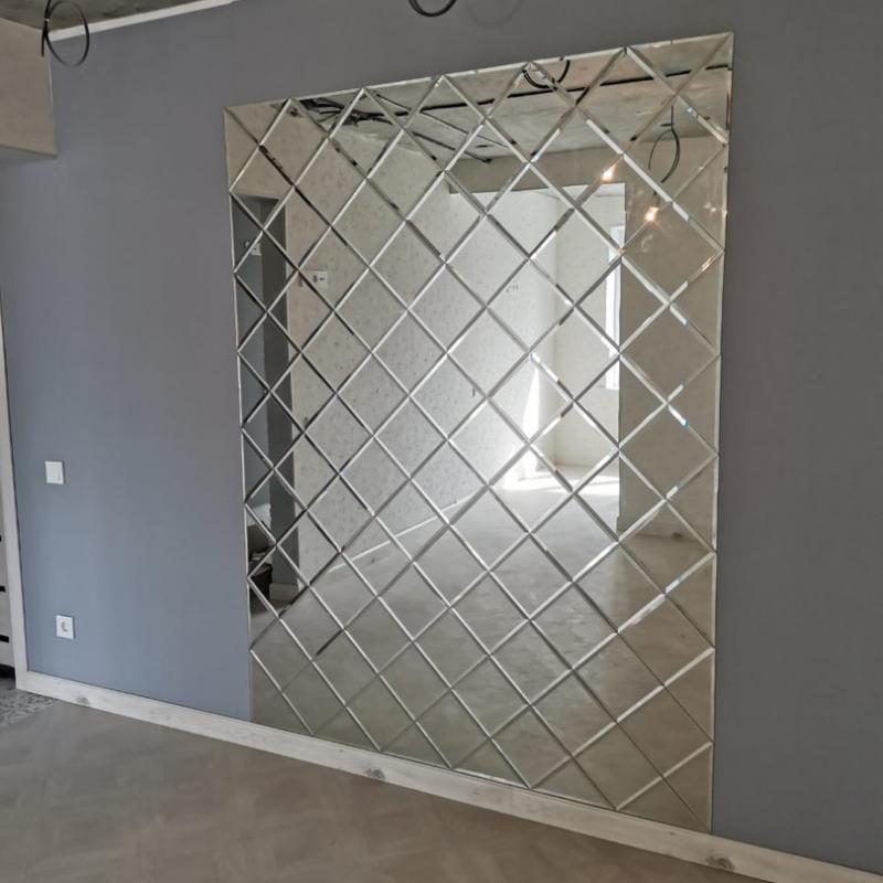 Использована зеркальная квадратная и треугольная плитка с фацетом.