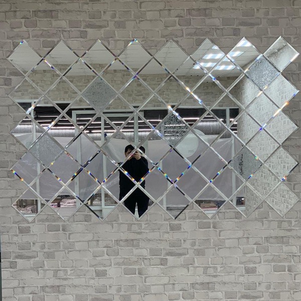 Использована зеркальная плитка вытянутый ромб размерами 20х34.